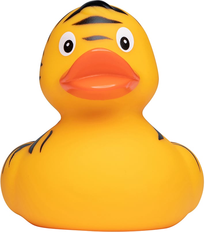 Mit den Tigerstreifen ist diese Ente perfekt getarnt und Ihre Badewanne wird sich automatisch in eine tropische Lagune verwandeln. Wenn man es ein bisschen wilder mag, dann ist unsere getiegerte Ente die richtige Wahl!
