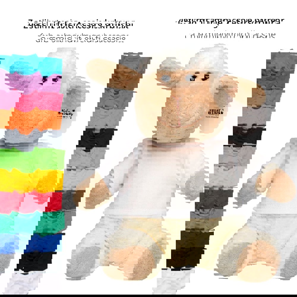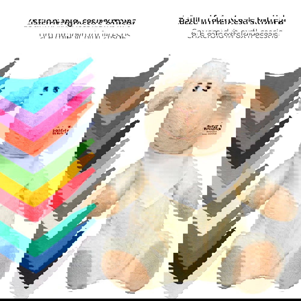 Unser schmuseweiches OEKO-TEX® Schaf Theo schafft mühelos sein Upgrade vom Nutztier zum nachhaltigen Kuschelhelden für Kinder und Erwachsene und bringt nachhaltige Werbung in Kinder- und Schlafzimmer. Für Logoanbringung oder Werbung existieren vielfältige Möglichkeiten, neben angenähten Domings oder einer Werbefahne auch bedruckbare Mode und Accessoires für Kuscheltiere wie T-Shirts, Dreieckstücher und Schals.