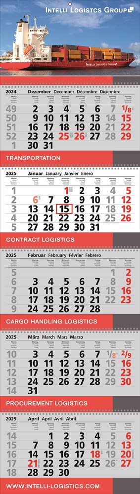Papierwandkalender mit 5 Monaten auf 5 einzelnen Blöcken, mit Wire-O-Bindung, 4-sprachig (D,GB,F,E) mehr