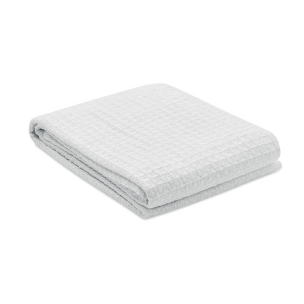 Leichte Decke aus Baumwolle 350 g/m² im Waffelmuster. Lieferung in Schachtel mit weißem Deckel. mehr