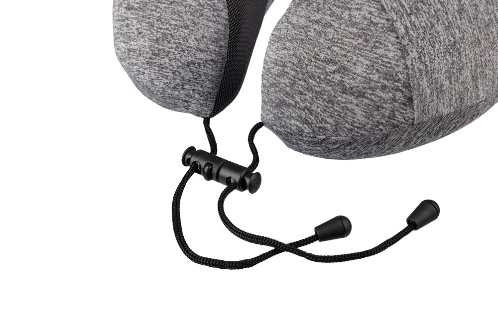 Memory-Foam-Reisekissen mit verstellbarer Schnur. Verpackt in einem rPET-Beutel.