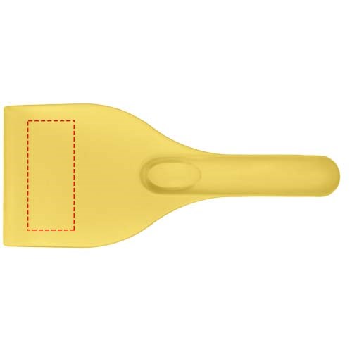 Einfacher Windschutzscheibenkratzer mit großer Werbeanbringungsfläche. Der starke Griff sorgt dafür, dass genügend Druck ausgeübt werden kann, um das gesamte Eis von der Scheibe zu entfernen. Hergestellt in Großbritannien aus recyceltem Kunststoff. Der Eiskratzer hat aufgrund der Beschaffenheit des recycelten Materials eine gesprenkelte Oberfläche.