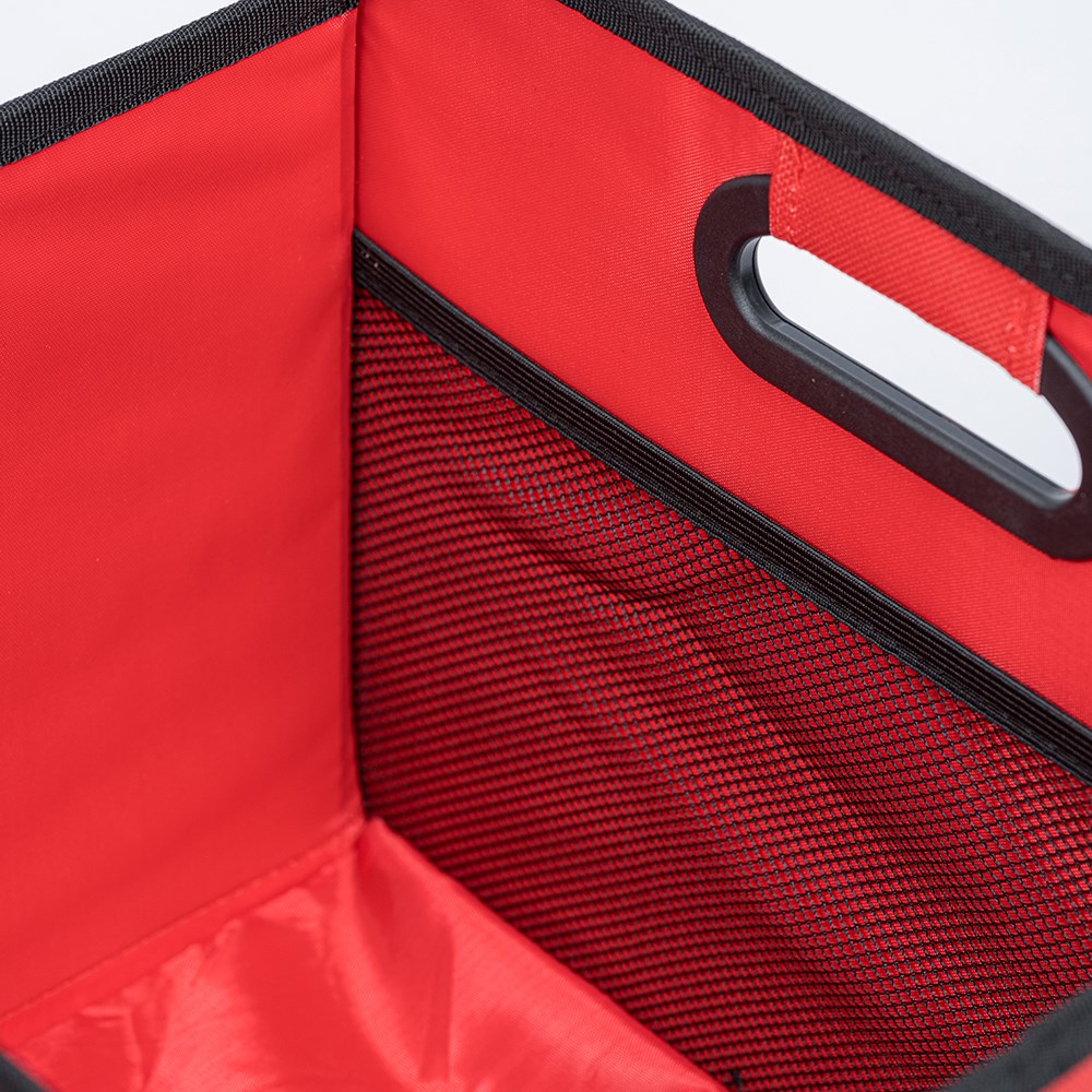 Der zusammenfaltbare Organizer mit integrierten Tragegriffen bietet viel Platz zum Verstauen von Einkäufen, Autozubehör, Büromaterial und vielem mehr. Die Faltbox beinhaltet zwei Fächer mit je einem Netzeinsteckfach und ist durch den verstärkten Einlegeboden äußerst robust und gut geeignet für schweren Inhalt. Maße: 50x32x27 cm