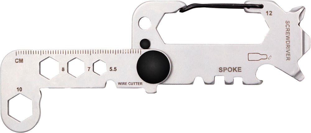 Das aus gehärtetem 420 Martensit-Edelstahl gefertigte Twist-Multitool vereint 8 wichtige Werkzeuge in einem kompakten Twist-Design, das bequem in der Hand liegt. Dieses vielseitige Werkzeug umfasst einen Drahtschneider, einen Fahrradspeichenschlüssel, mehrere Schraubenschlüssel (5,5-12 mm), einen Schlüsselanhänger, einen Flaschenöffner, einen Karabinerhaken, einen Kreuzschlitz- und einen Schlitzschraubendreher sowie ein Lineal. Verpackt in einer schwarzen Box mit einer weichen Schaumstoffeinlage zum Schutz, ist es sowohl schlank als auch praktisch und ideal für alltägliche Aufgaben.
