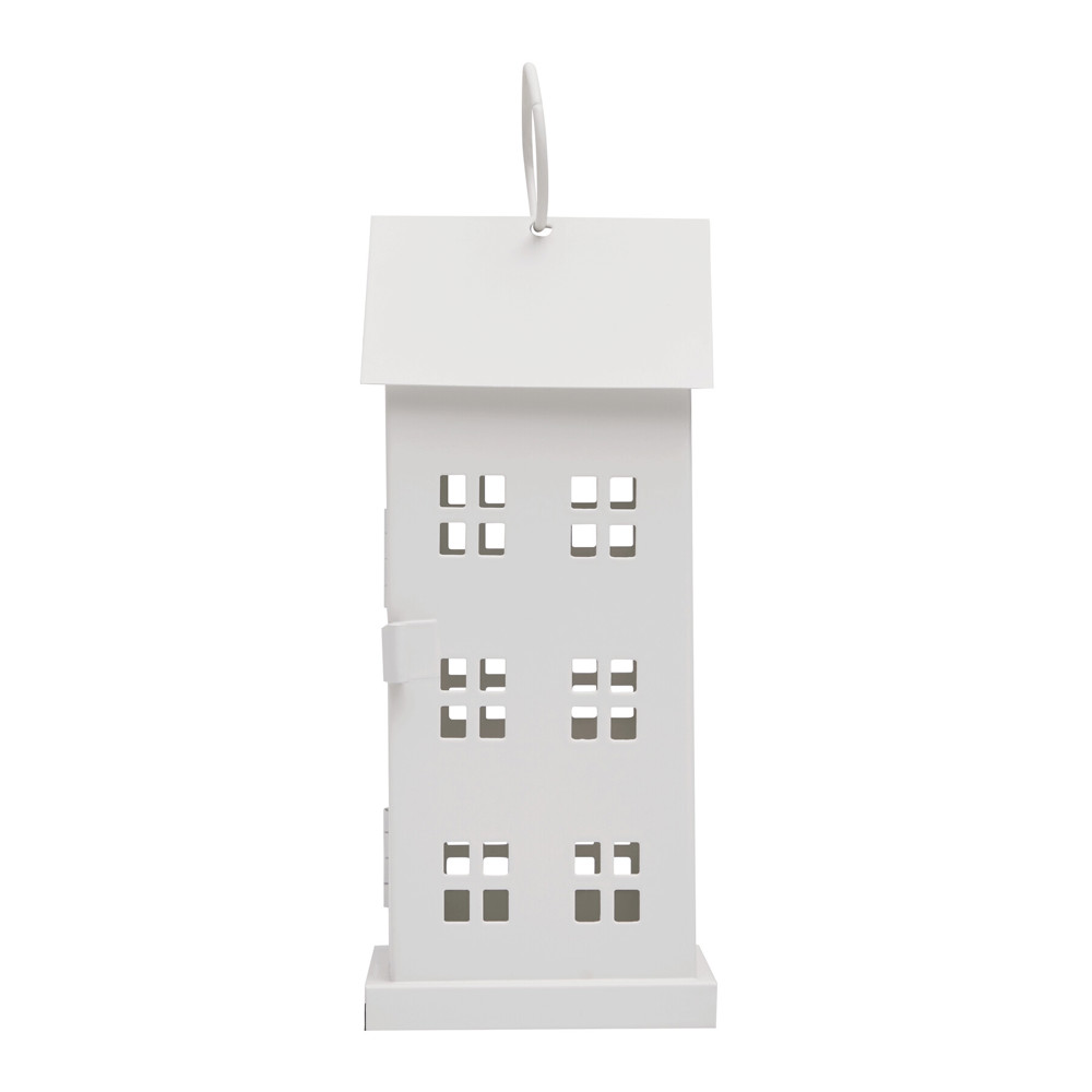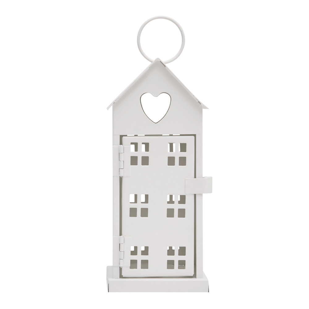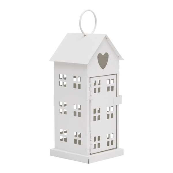 Windlicht SHINY LIGHT: Metall-Häuschen mit je 6 Fenstern auf jeder Seite, Tür zum Öffnen und Befüllen mit Teelicht oder Lichterkette (nicht enthalten), Aufhängeöse am Dach