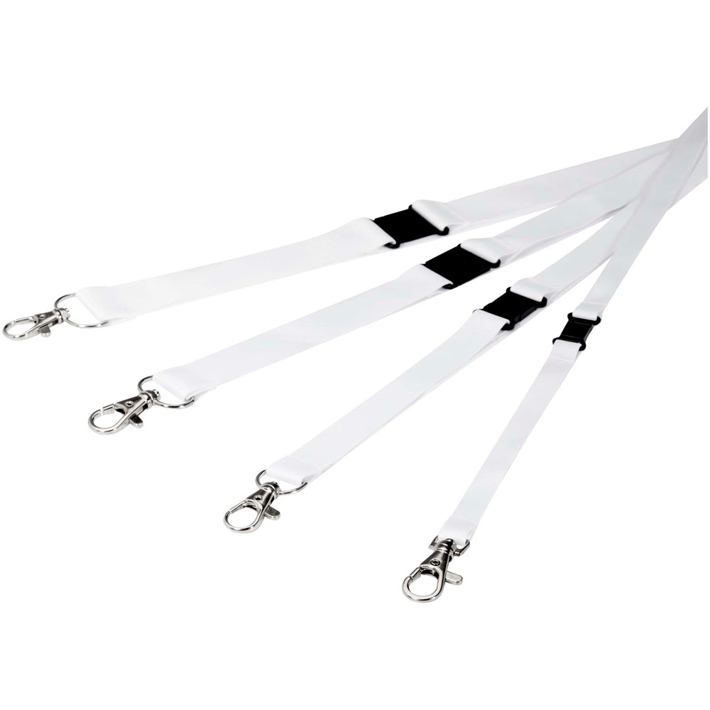 Sublimation-Lanyard aus RPET im Vollfarbdesign mit RPET-Band, einem Schlüsselring und einer Schnalle mit Abreißverschluss zur Verringerung von Erstickungsgefahr. Sie können ein Namensschild, einen Ausweis oder Schlüssel daran befestigen. Erhältlich in 4 verschiedenen Breiten: 10, 15, 20 und 25 mm.