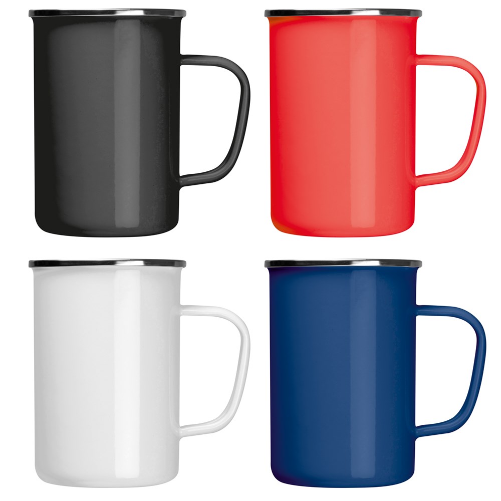Entdecken Sie unsere robuste große Emaille-Tasse mit einem großzügigen Füllvermögen von 550 ml, komplett mit Henkel für bequemes Trinken. Wir bieten die Möglichkeit, Ihr Logo neben den Henkel mittels Keramiktransfer zu platzieren, um eine individuelle und hochwertige Präsentation Ihrer Marke zu gewährleisten.