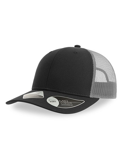 Hauptmaterial: 100 % zertifizierter recycelter Polyester-Twill / Seite und Rückseite: 100 % zertifiziertes recyceltes Polyester (aus 3 Flaschen hergestellt) | Klassische strukturierte Fünf-Segmente-Truckerkappe aus recyceltem Polyester-Twill | Recyceltes Mesh-Material zur Luftzirkulation | Snapback-Verschluss aus recyceltem PVC | Breite Form | Leichte und atmungsaktive Form