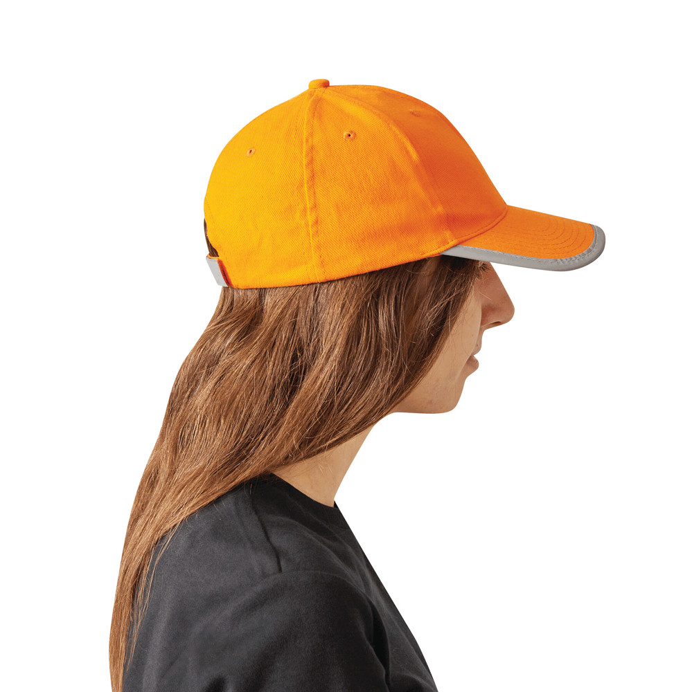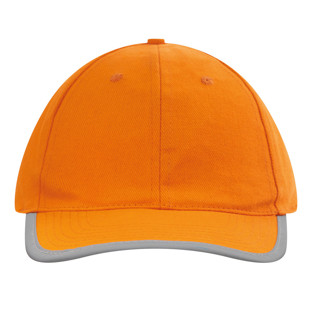 6-Panel-Baseball-Cap DETECTION: mit reflektierendem Band an Schirm und hinten auf dem Klettverschluss, verstärkte Frontsegmente, 6 gestickte Luftlöcher, Knopf, 100% Baumwolle (heavy-brushed)