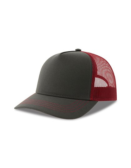 Freizeit-Truckermütze aus recyceltem Polyester-Segeltuch und recyceltem Polyester-Netzgewebe an der Seite und auf der Rückseite | Fünf-Segmente-Design und leicht gebogener Schirm