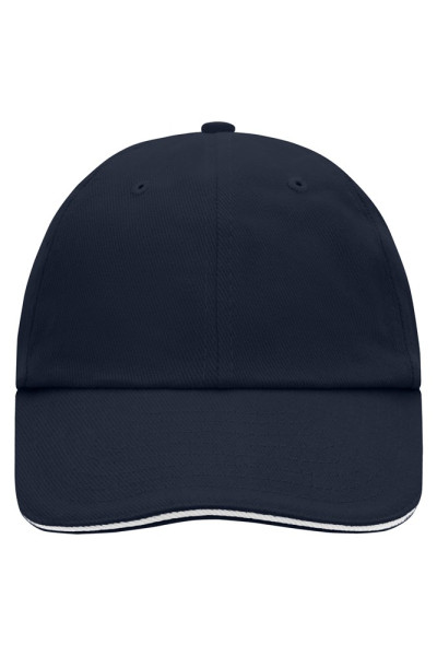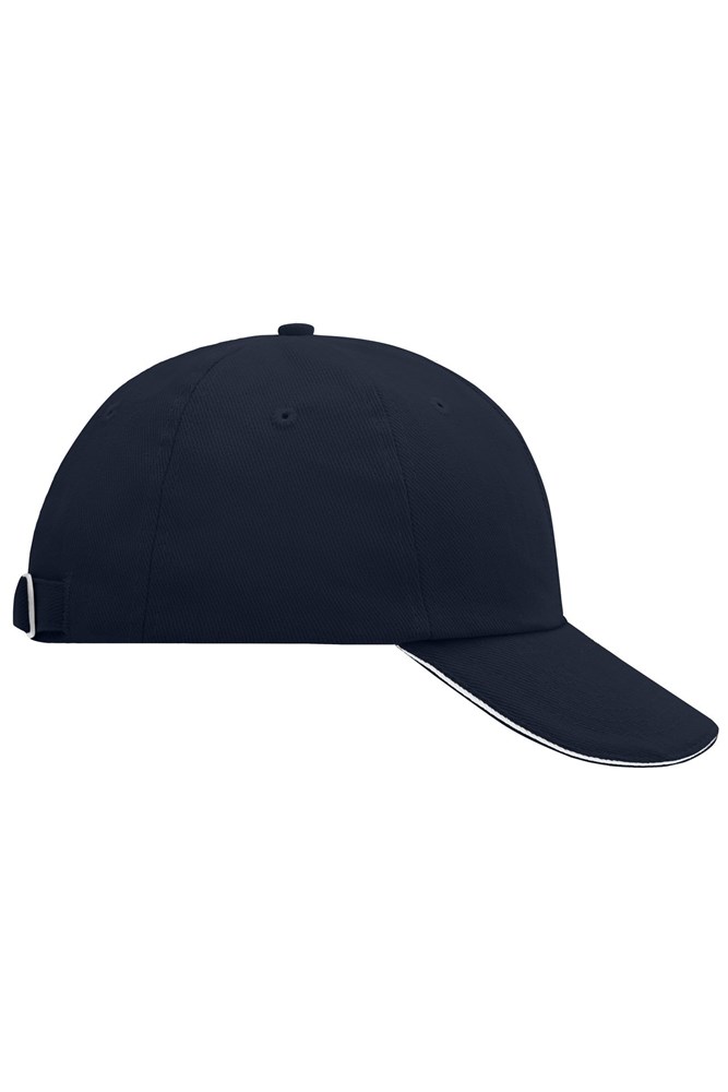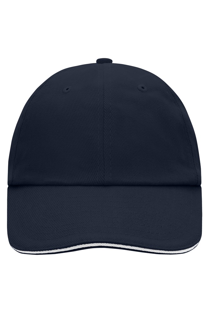 6 gestickte Luftlöcher 8 Ziernähte am Schild Stirnanliegend Gefüttertes Satinschweißband Auch ohne Sandwich erhältlich, siehe MB6111 Metallschnalle in mattsilber mit Druckknopf und gestickter Öse Heavy brushed Cotton Heavy brushed Cotton angeraut Baumwolle Verschluss: Clip 6 Panel Cap stirnanliegend Sandwich