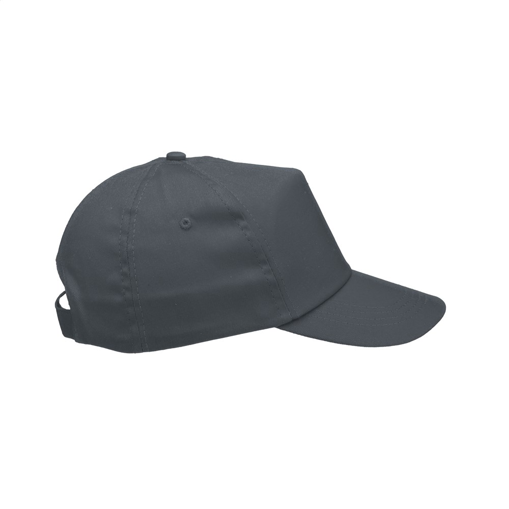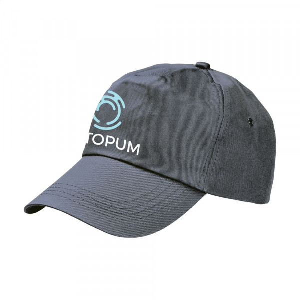 Baseballkappe aus 100% Baumwolle mit vorgeformtem Schirm und verstellbarem Verschluss.