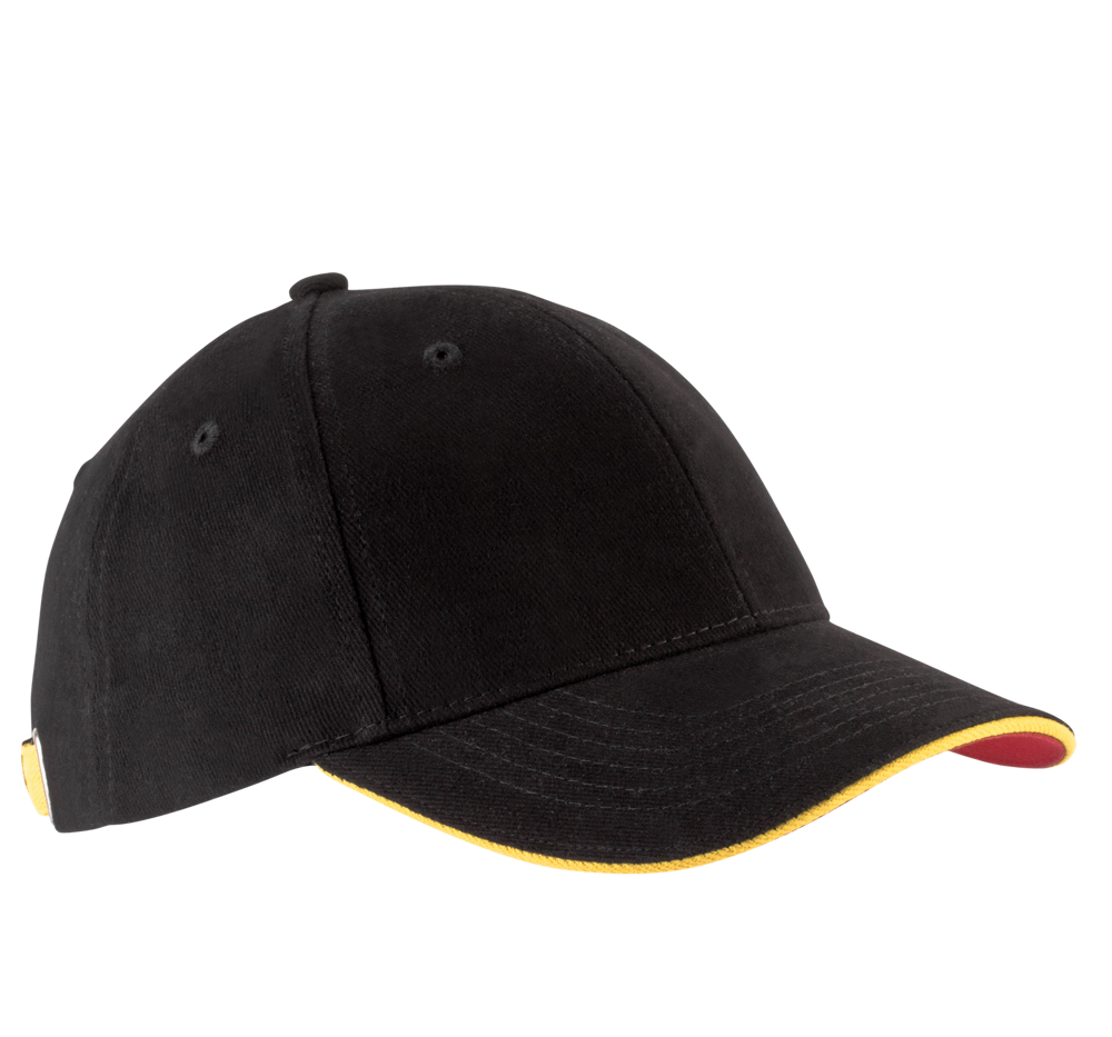 100% stark gebürstete Baumwolle. Schirm mit Kontrastblende. Klemmverschluss. * 3 Farben mit zusätzlicher Kontrastfarbe unter dem Schirm.