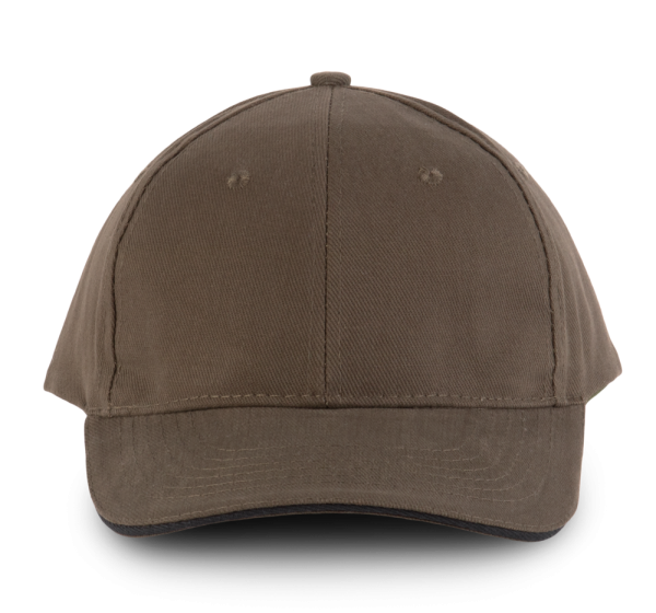 100% stark gebürstete Baumwolle. Schirm mit Kontrastblende. Klemmverschluss. * 3 Farben mit zusätzlicher Kontrastfarbe unter dem Schirm.