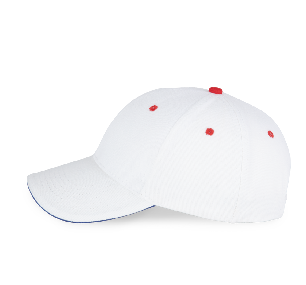 100% stark gebürstete Baumwolle. Schirm mit Kontrastblende. Klemmverschluss. * 3 Farben mit zusätzlicher Kontrastfarbe unter dem Schirm.