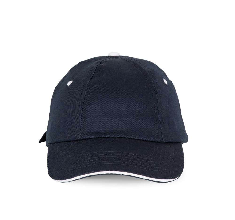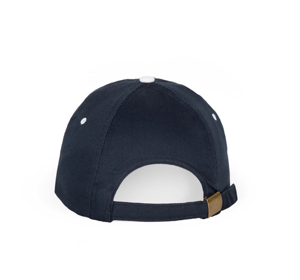 100% gebürstetes Baumwolltwill. Ohne Mittelnaht. Schirm mit Kontrastblende. Klemmverschluss.