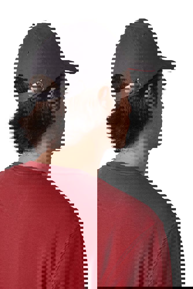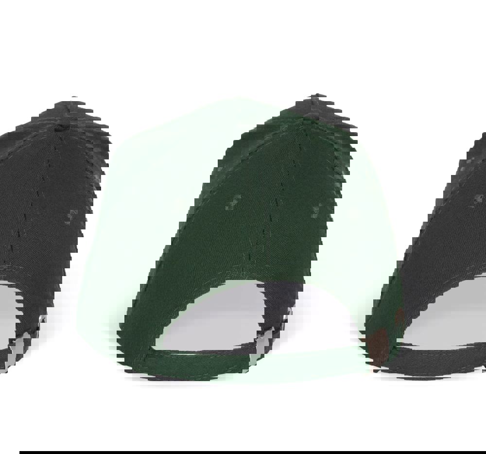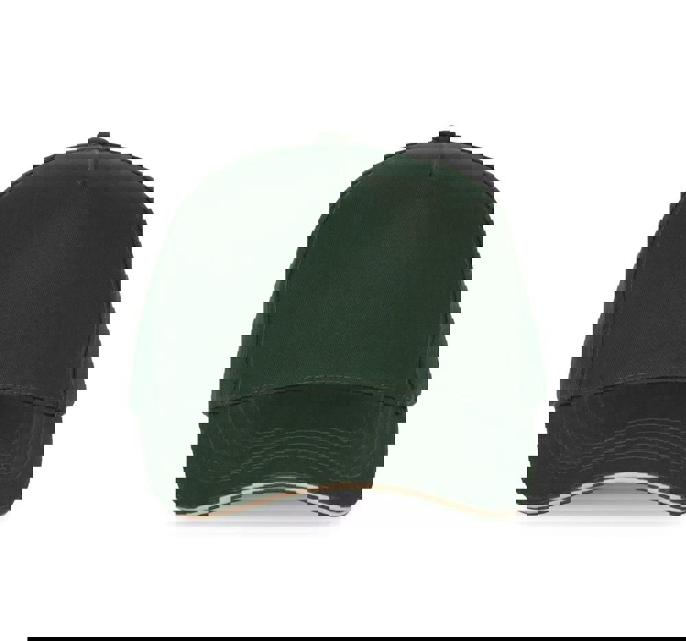100% stark gebürstete Baumwolle. Laminierte 5-Panel-Kappe. Sandwichschirms mit kontrastfarbenem Mittelstück. Baumwoll-Schweißband. Größenverstellbar durch Metallschnalle.
