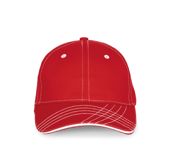 100% gebürsteter Baumwoll-Twill. 6-Panel, laminiert. Ösen und Nähte in Kontrastfarbe. Baumwoll-Schweißband.
