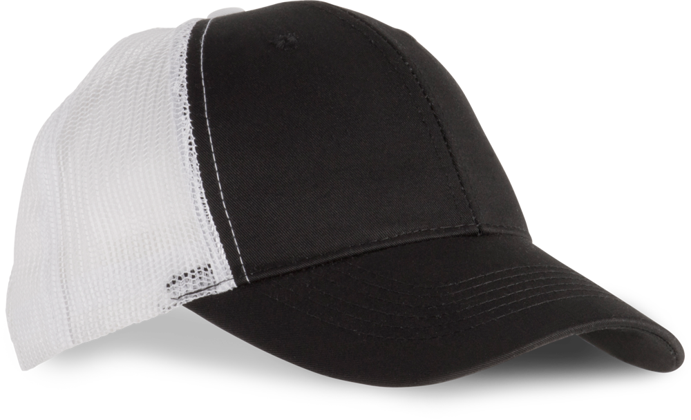 65 % Baumwolle / 35 % Polyester. Trucker-Cap mit 6 Panels, gebogenem Schirm und farblich abgestimmten Einsätzen auf der Vorderseite.