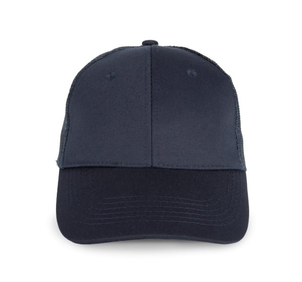 65 % Baumwolle / 35 % Polyester. Trucker-Cap mit 6 Panels, gebogenem Schirm und farblich abgestimmten Einsätzen auf der Vorderseite.