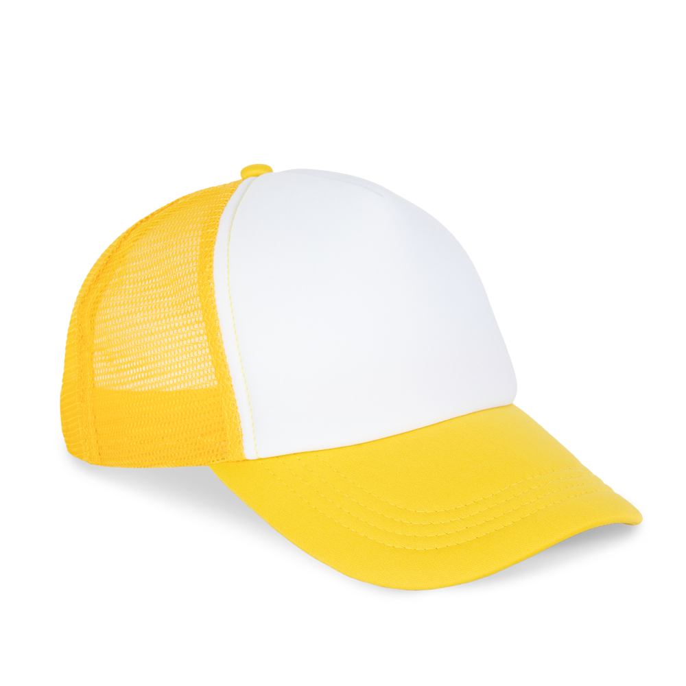 100% Polyester. 5-Panel-Kappe. Mit Schaumstoff-Einsatz zur Personalisierung am Vorderpanel und am Schirm. Größenverstellbar durch Kunststoffschnalle.