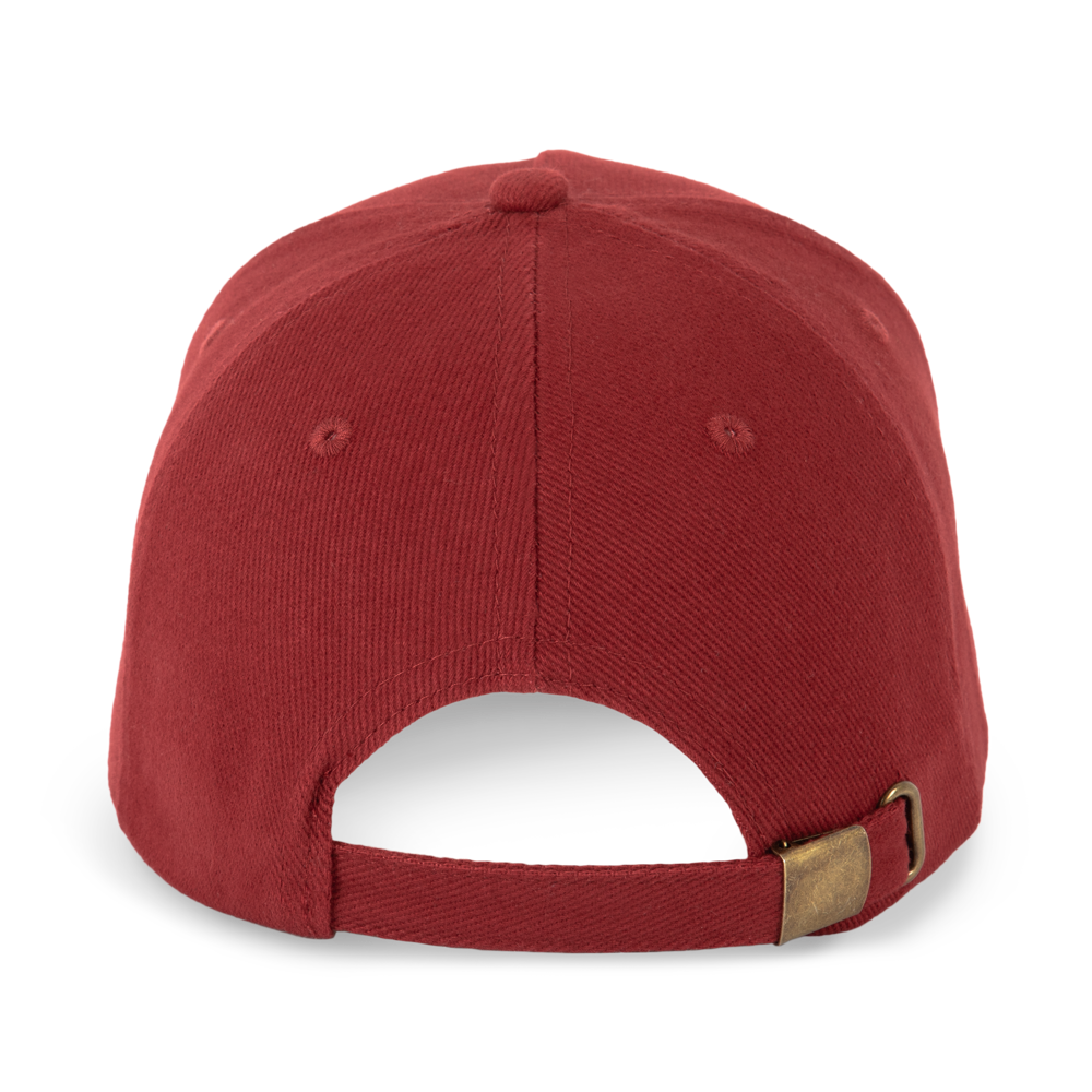 100 % Baumwolle. Dicke, gekämmte Baumwolle. 5-Panel-Cap. Verschluss mit Metallschnalle hinten.