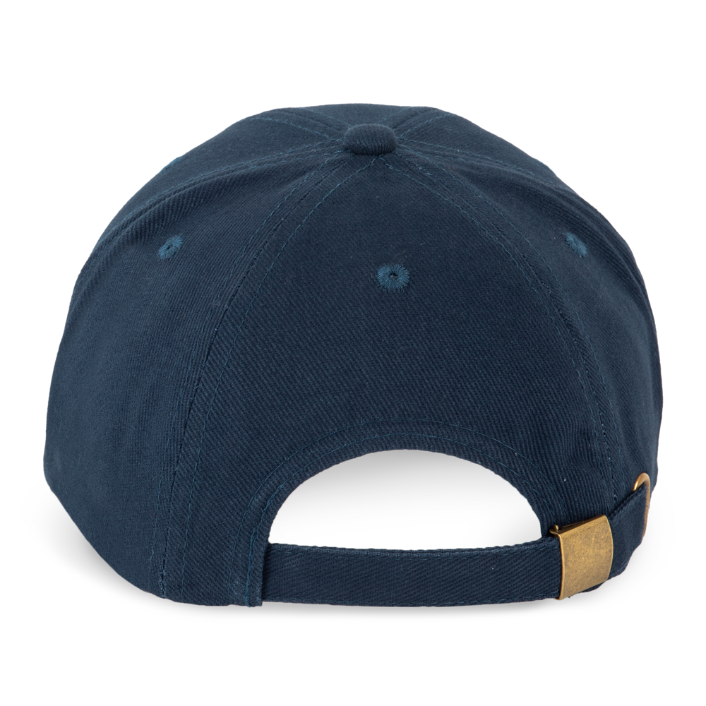 100% grob gebürstetes Baumwolltwill. 6-Panel. Leicht zu bedruckender Schirm. Größenverstellbar durch Metallschnalle.