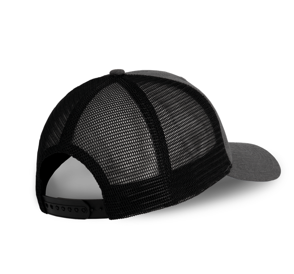 100% Polyester. 6-Panel Urban Trucker-Kappe mit abgerundetem Sonnenschutz-Visor. Die ganzheitlichen Frontpanels sowie die Mesh-Panels bestehen aus Polyester. Kunststoffriegel zur Weiteregulierung.