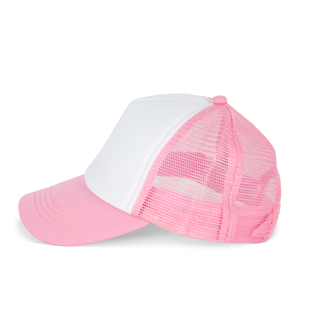 100 % Polyester mit Polyesternetz hinten. 5 Panels. Problemlose Veredelung auf vorderem Panel. Kunststoffschnalle zur Weitenregulierung. Kopfumfang: 53 cm.