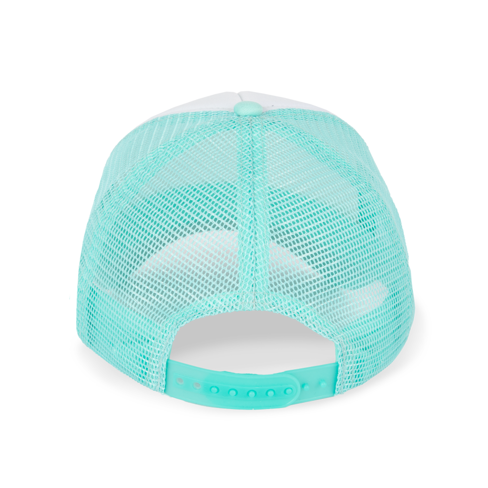 100 % Polyester mit Polyesternetz hinten. 5 Panels. Problemlose Veredelung auf vorderem Panel. Kunststoffschnalle zur Weitenregulierung. Kopfumfang: 53 cm.
