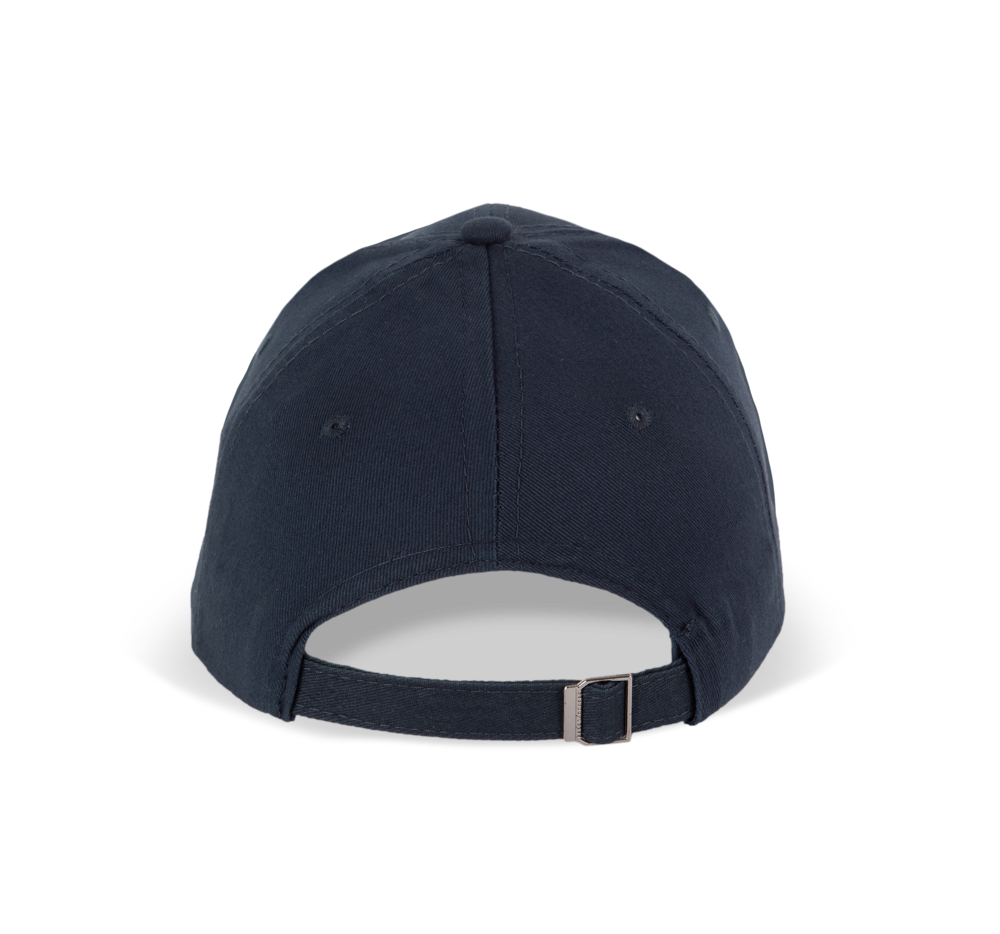 100 % Baumwollserge. 6 Panels. Kontrast-Sandwichschirm. Einstellbarer Verschluss mit Metallschnalle hinten.