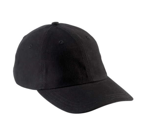 100 % dicker, gebürsteter Baumwollserge. 6 Panels. Tief sitzender Schirm. Verschluss mit Metallschnalle hinten.