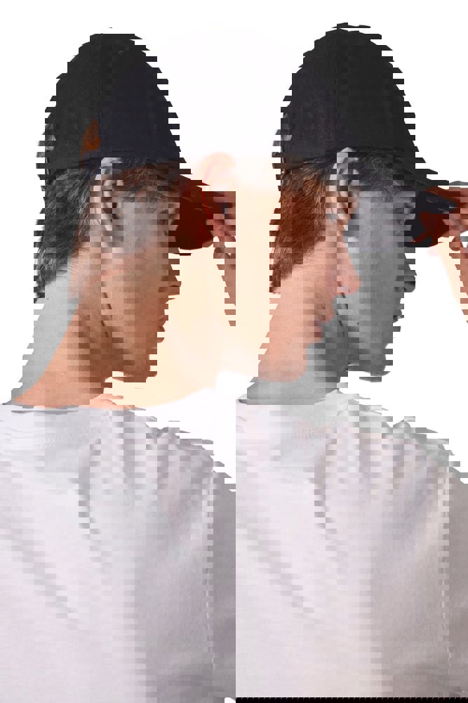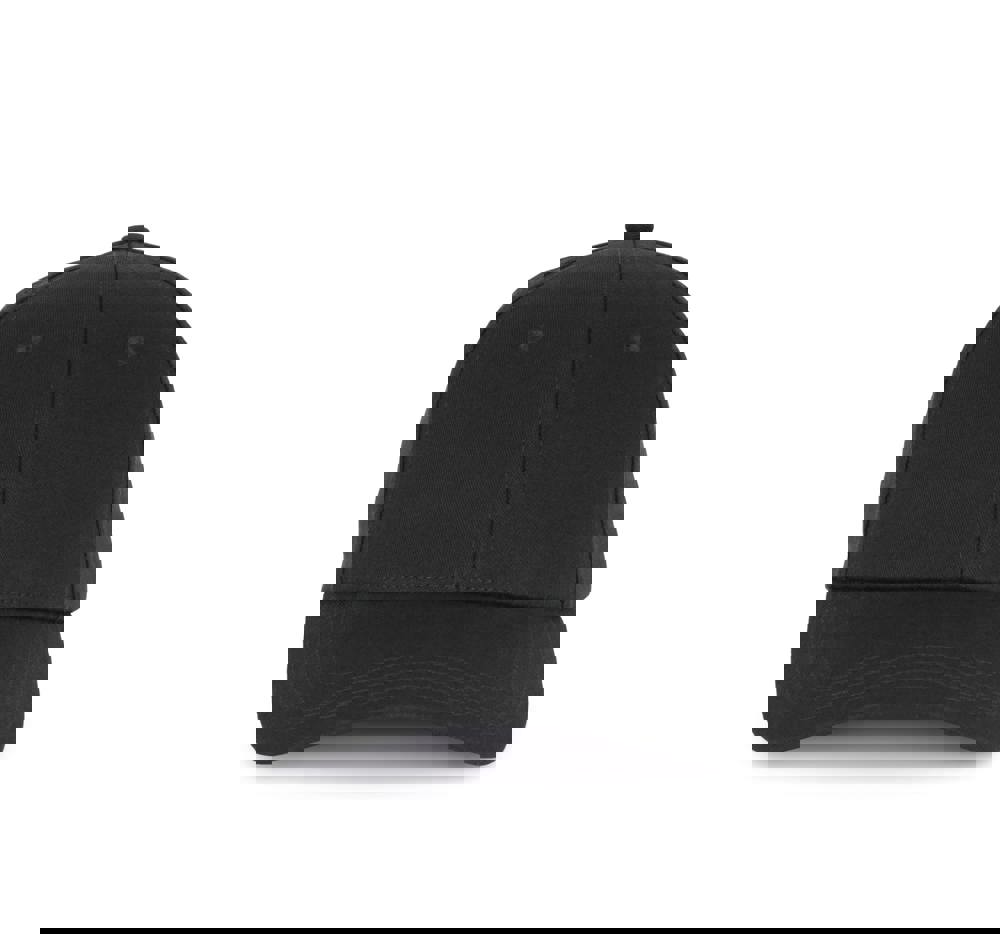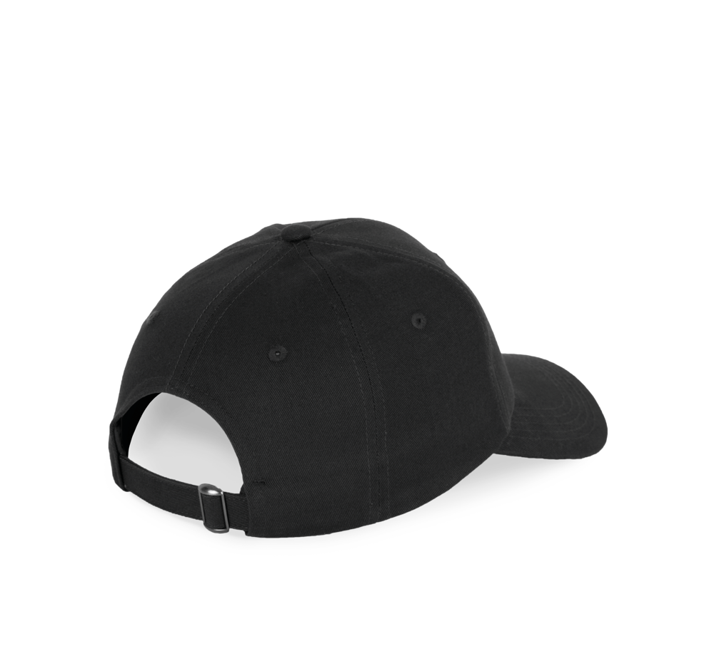 100 % Baumwolle. 6-Panel-Kappe aus 60 % recycelter Baumwolle pré-consumer und 40 % reiner Baumwolle. Verstellschlaufe aus Metall auf der Rückseite der Kappe.