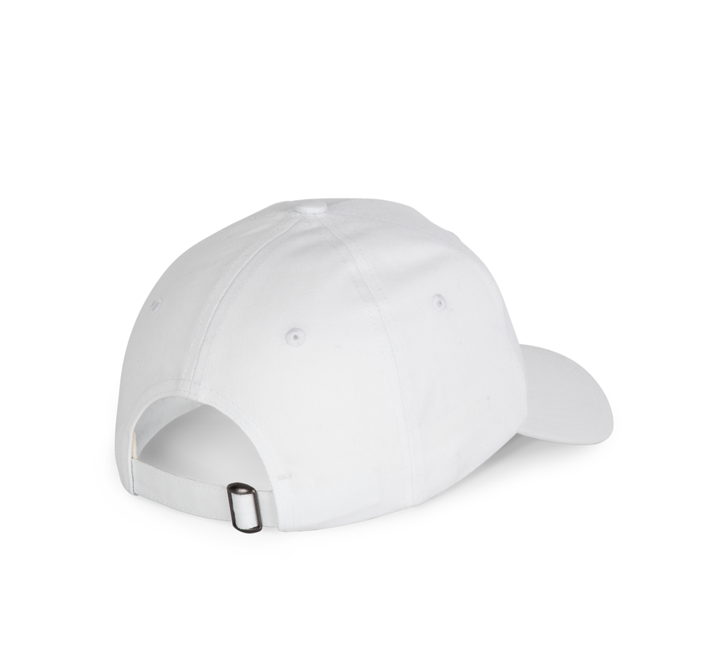 100 % Baumwolle. 5-Panel-Kappe aus 60 % recycelter Baumwolle pré-consumer und 40 % reiner Baumwolle. Verstellschlaufe aus Metall auf der Rückseite der Kappe.