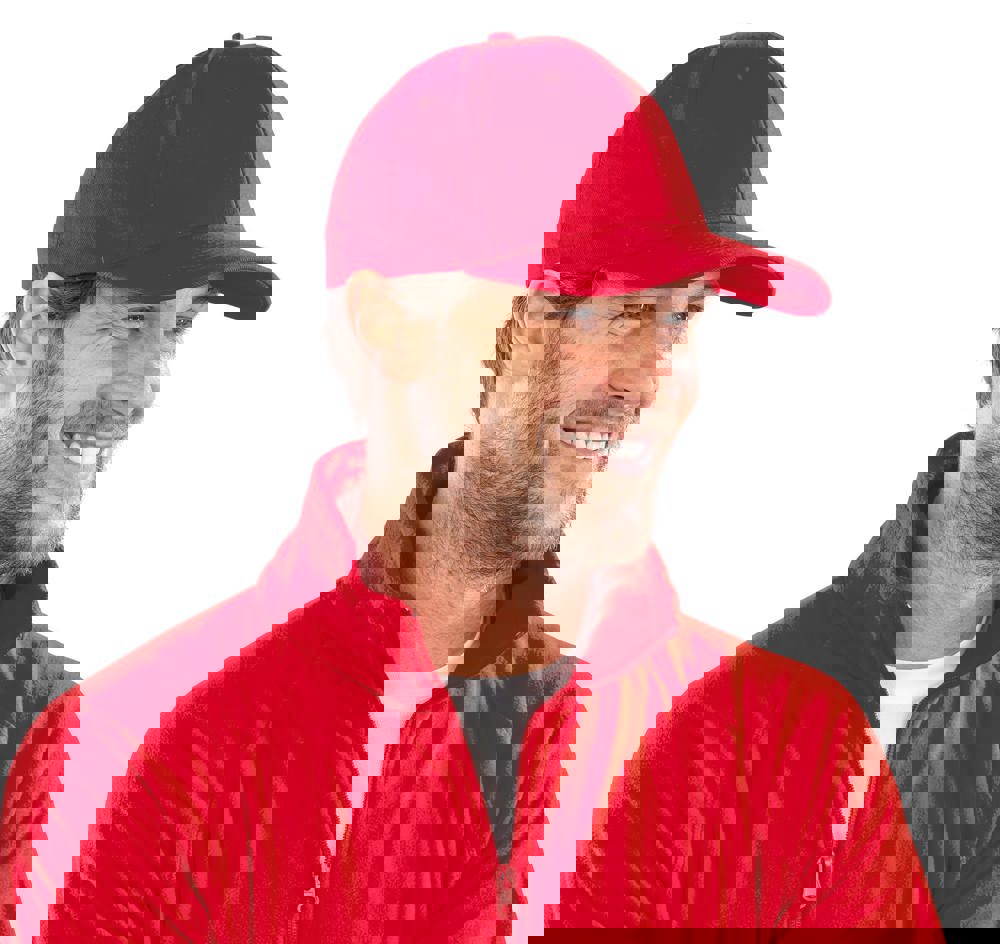 100% gebürstete Baumwolle. 6-Panel-Cap, verstärktes Vorderfeld mit kleinem Profil. Flache Blende aus recycletem PU, 6-fach vernäht. Ösen. Durch Klettverschluss in der Weite einstellbar. Heraustrennbares Etikett. Für Sticken und digitalen Transferdruck geeignet.
