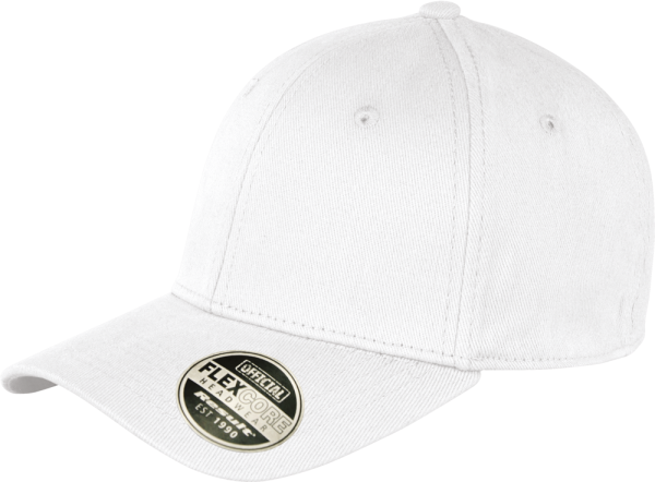 98% Baumwolle, 2% Elasthan. 6-Felder-Kappe. Steifes, vorderes Feld. Blende aus recycletem PU, vorgeformt, 6-fach vernäht. Genähte Ösen. Knopf auf der Kappe. Elastisches Schweißband. Heraustrennbares Etikett. Für Stick geeignet.