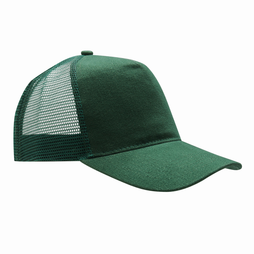 5-Panel-Baseball-Cap FASTBALL: verstärktes Frontsegment aus gebürsteter Baumwolle, übrige Segmente aus Netzstoff, Knopf, größenverstellbarer, doppelreihiger Kunststoffverschluss am Hinterkopf