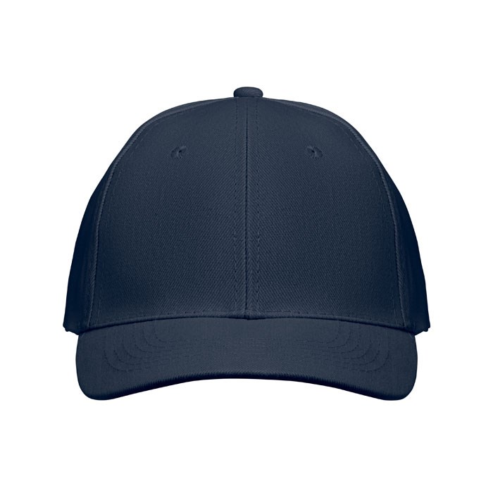 6-Panel-Baseball-Cap aus gebürsteter Baumwolle 260 g/m² mit silberner Schnalle aus Stahl mit Einstecklasche. Sechs farblich abgestimmte, umstickte Belüftungslöcher. Größe 7 1/4.