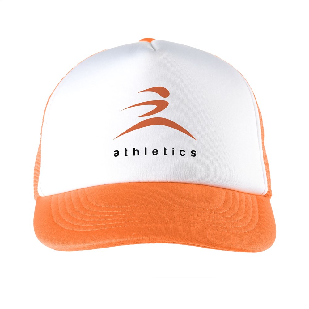 Baseball-Cap mit vorgeformtem Schaumstoffschirm, Schaumstoffvorderseite und Kunststoff-Rückseite in Netzstruktur für optimale Belüftung. Verstellbarem Kunststoffverschluss.