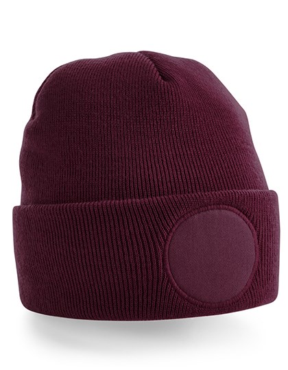 100 % Soft-Touch Polyacryl | Abreißetikett für einfaches Rebranding | Doppellagiger Strick | Baumwoll-Twill-Aufnäher zum Veredeln | Dekorationsfläche: 6 cm Durchmesser