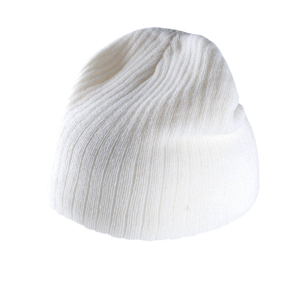 100% Acryl. Strickmütze in einfachem Rippenmuster.