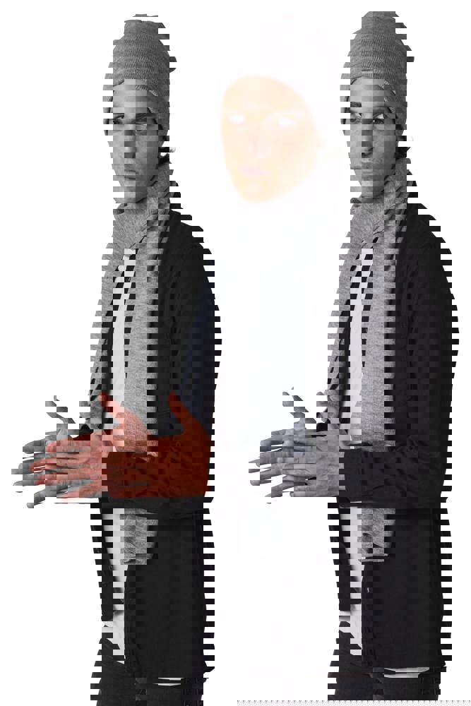 100 % Acryl. Kardiertes Acryl. Passt perfekt zum Schal KP435, der dieselbe Farbe hat und aus demselben Material besteht.