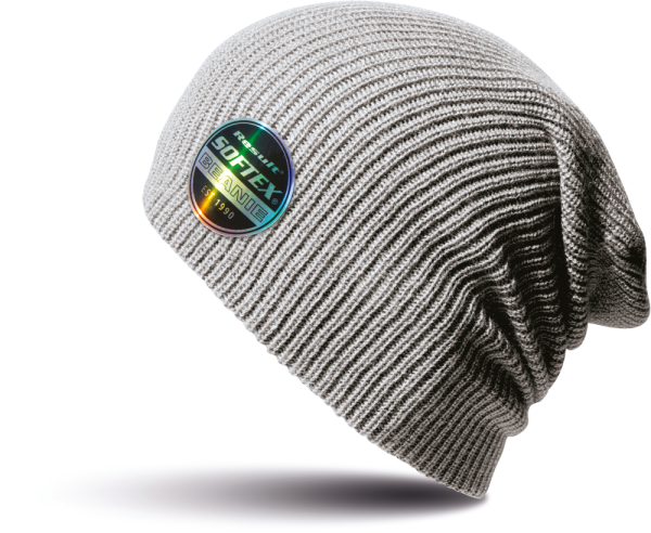 100% Acryl. Doppelt gestrickt. Lange Beanie-Mütze. One size (19.5 x 30cm)