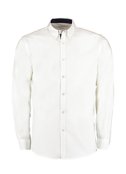 ·Innenseite von Kragen, Knopfleiste und Manschetten in Kontrastfarbe