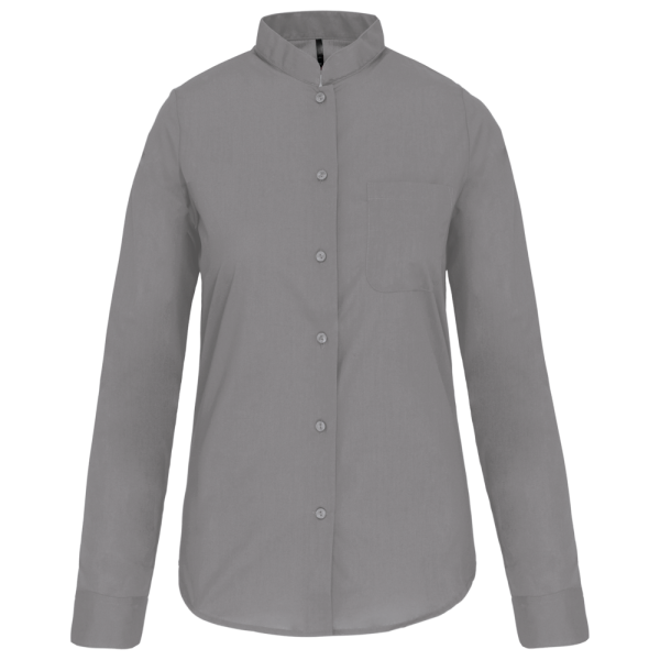 65% Polyester / 35% Popeline-Baumwolle. Pflegeleicht. Knopfloser Mao-Kragen. Ton-in-Ton Knöpfe. V-förmige Brusttasche links. Lange Ärmel mit abgerundeten und weitenverstellbaren Manschetten. 1 Ersatzknopf. Rund geschnittener Saum.