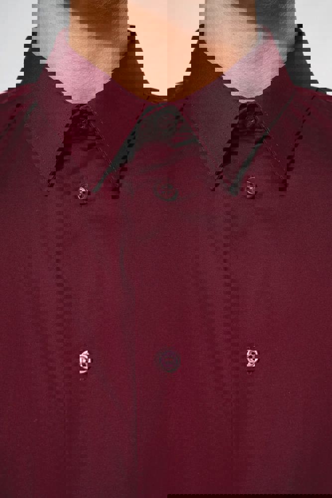 97% Baumwolle / 3% Elasthan. Körpernaher Schnitt. Halb ausgestellter, stäbchenverstärkter Kragen. Farblich abgestimmte Knöpfe. Rückwärtige Schulterpasse mit 2 an den Seiten eingelegten Falten. Abgeschrägte Manschette mit 2 Knöpfen, dazu 1 Knopf auf dem Manschettenaufschlag. 2 Ersatzknöpfe. Abgerundeter Saum.