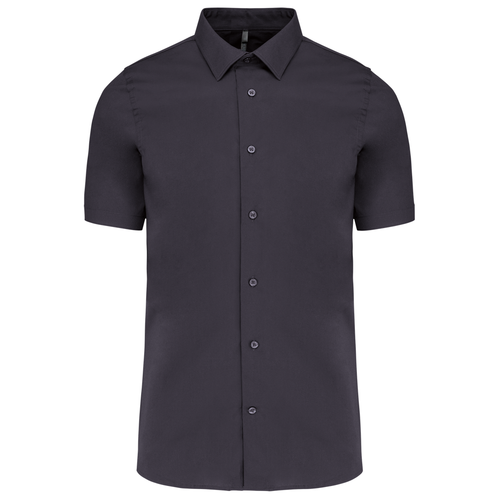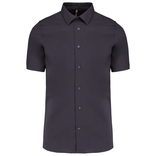 97% Baumwolle 3% Elasthan. Körpernaher Schnitt. Halb ausgestellter, stäbchenverstärkter Kragen. Farblich abgestimmte Knöpfe. Rückwärtige Schulterpasse mit 2 an den Seiten eingelegten Falten. Gefüllter Saum am Ärmelende. 1 Ersatzknopf. Abgerundeter Saum.