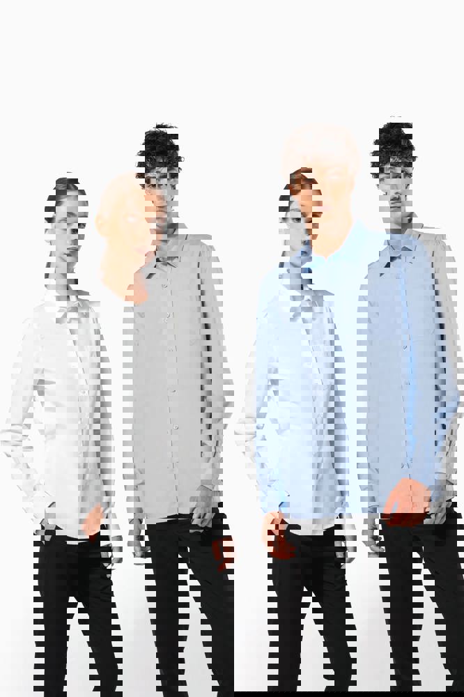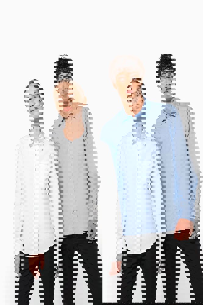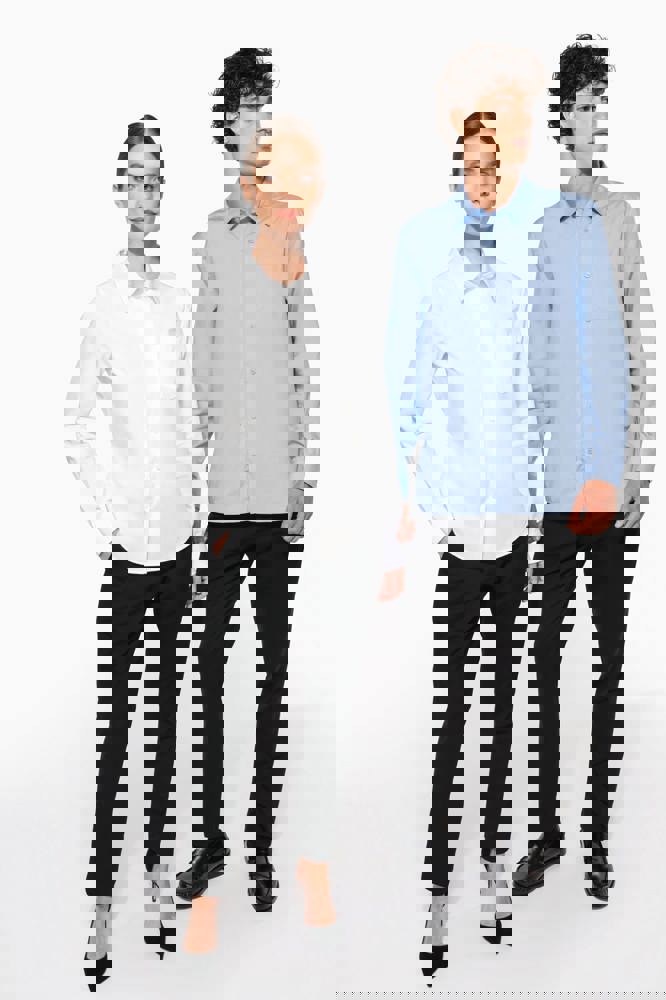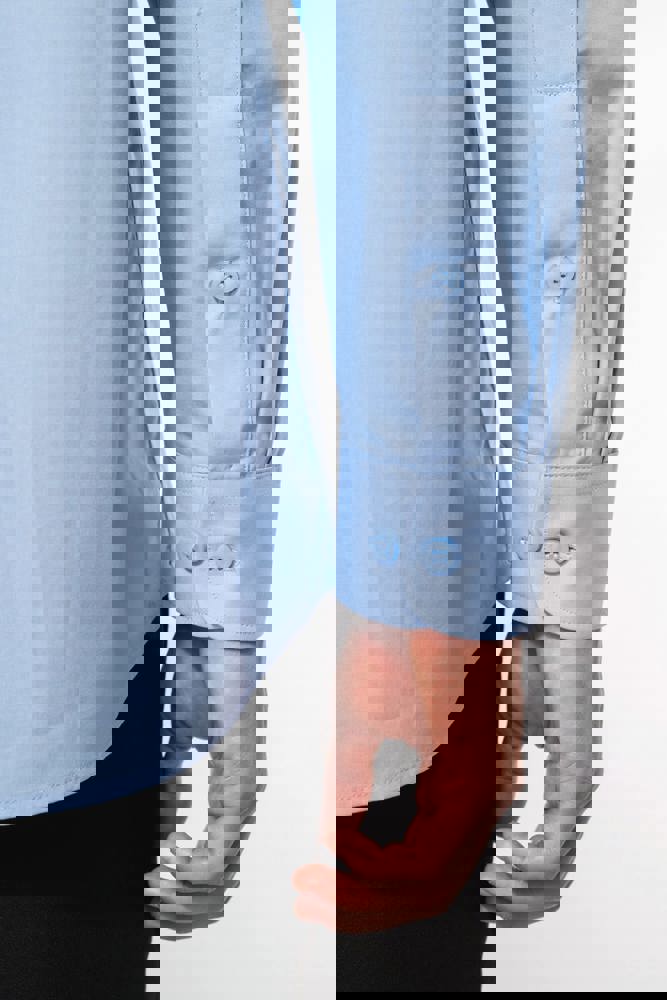 100% Baumwolle Popeline. Pflegeleichter Stoff. Stäbchenverstärkter Kragen. Farblich abgestimmte Knöpfe. Aufgesetzte Brusttasche auf der linken Seite. Rückwärtige Schulterpasse mit 2 an den Seiten eingelegten Falten. Eingesäumte Knopfleiste. Abgerundete Manschette mit 2 Knöpfen, dazu 1 Knopf auf dem Manschettenaufschlag. 2 Ersatzknöpfe. Abgerundeter Saum.