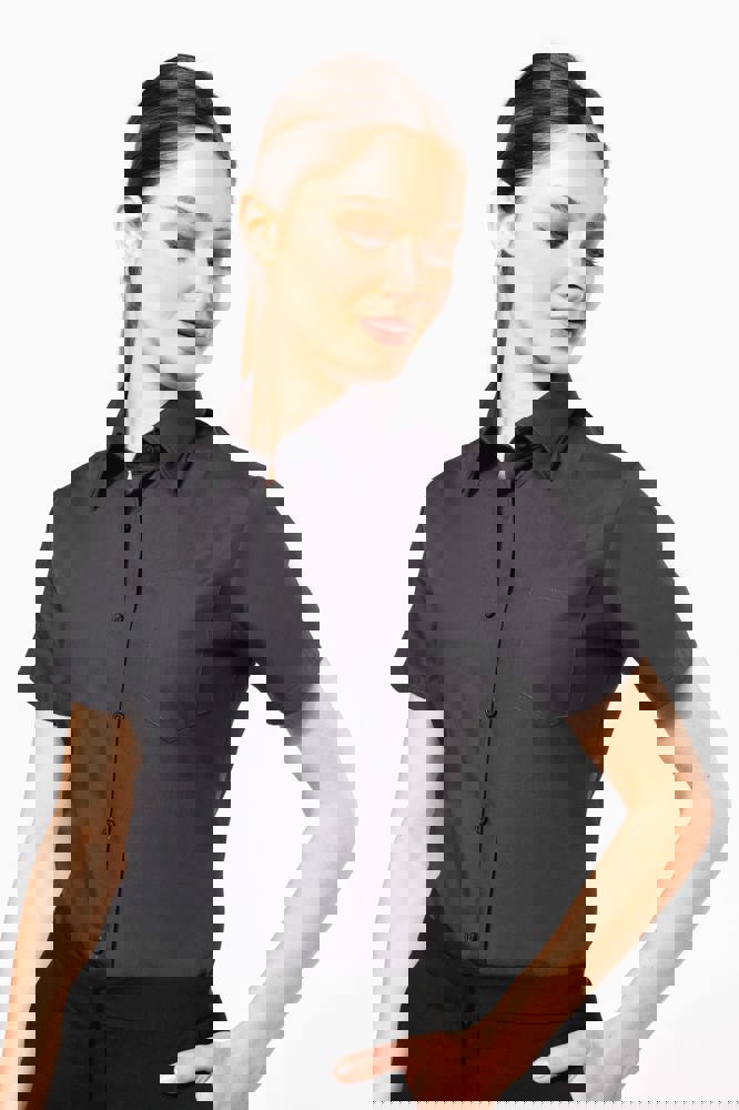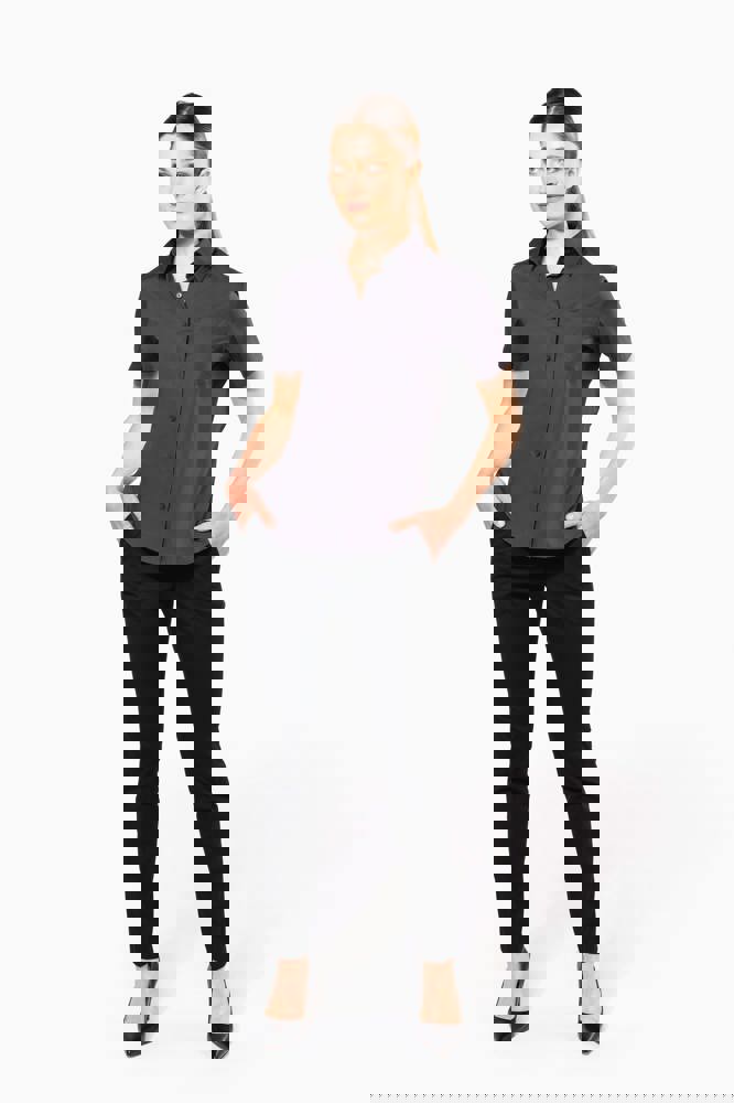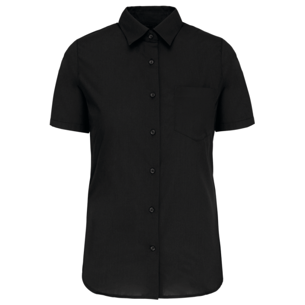 100% Baumwolle Popeline. Pflegeleichter Stoff. Klassischer, knopfloser Kragen. Farblich abgestimmte Knöpfe. Aufgesetzte Brusttasche auf der linken Seite. 1 Ersatzknopf. Abgerundeter Saum.