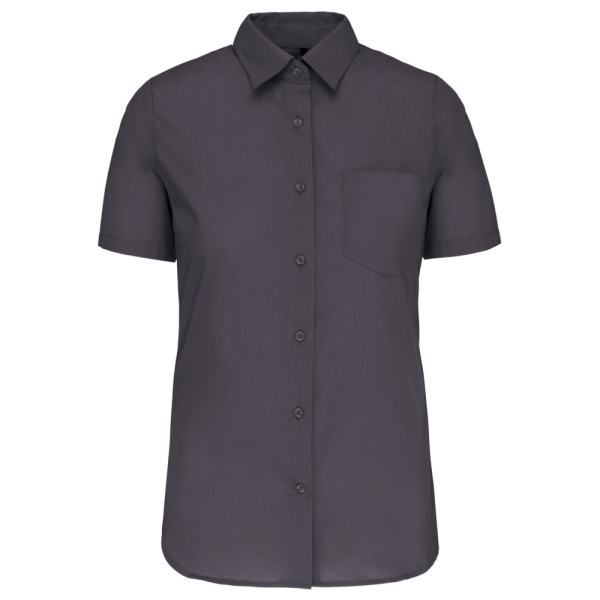 100% Baumwolle Popeline. Pflegeleichter Stoff. Klassischer, knopfloser Kragen. Farblich abgestimmte Knöpfe. Aufgesetzte Brusttasche auf der linken Seite. 1 Ersatzknopf. Abgerundeter Saum.